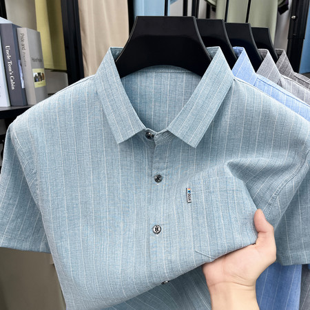 罗蒙衬衫&51537夏季新款莫代尔亚麻短袖衬衫
